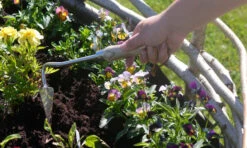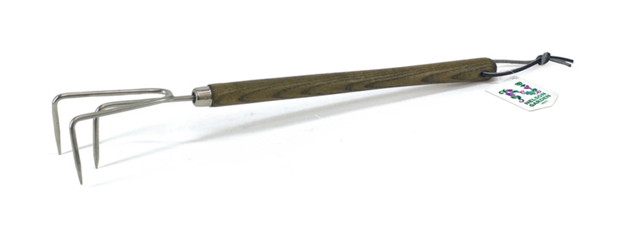 Handkultivator, geeignet fĂŒr den Einsatz in Hochbeeten, wie z. B. in Palettenrahmen. Dieses GartengerĂ€t ist funktionell, qualitativ hochwertig und aus schwarz lackiertem Stahl mit einem Griff aus FSC-zertifizierter Esche gefertigt.